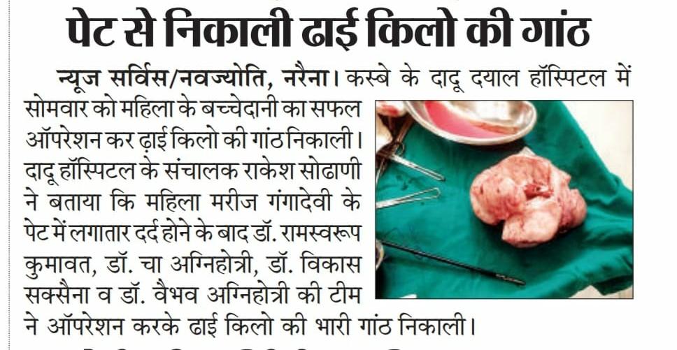 With the blessings of Shri Dadu Dayal Ji and under guidance of Acharya Shri Gopal Das Ji, the hospital is becoming a an important center of Healthcare in the surrounding areas of Jaipur.